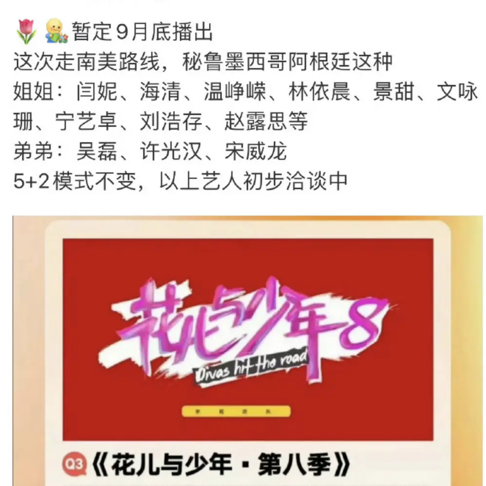 随着2026年的日历翻到三月,备受关注的旅行真人秀《花儿与少年》第八季似乎已经悄然启动了嘉宾洽谈模式。