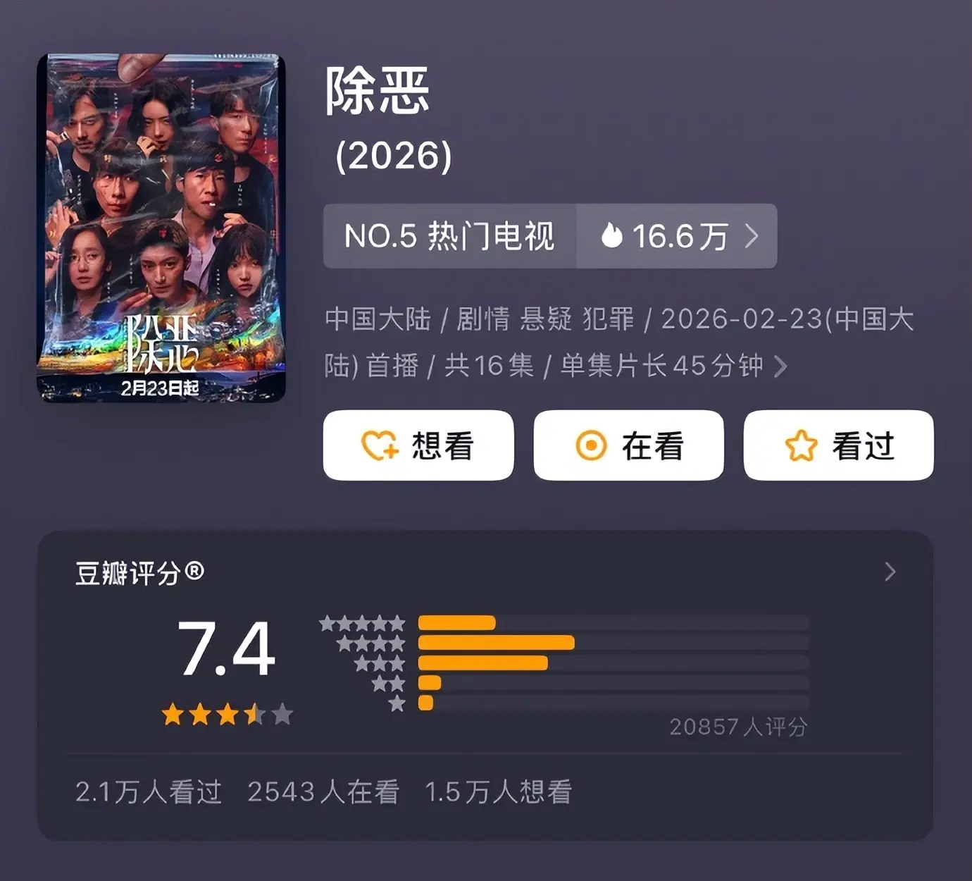 这部剧完美诠释了什么叫“开局即巅峰”——开播初期还有些声量,但随着剧情推进,弃剧的人越来越多,越播越冷,最后在同期新剧中几乎没什么存在感。