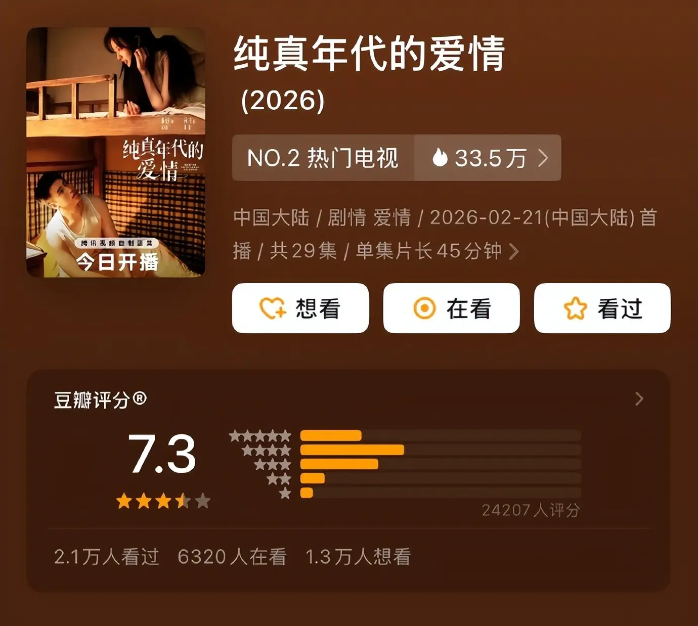 这部剧播出后热度与讨论度一路飙升,不仅成功赶超同期的《岁月有情时》,更是拿下了7.3分的开分成绩,成为近期评分最高的剧集。央视收视率创2026年新高,腾讯热度破了萤火单元记录,如今开分也很高,实现收视、热度、口碑三爆,这个成绩单确实漂亮。